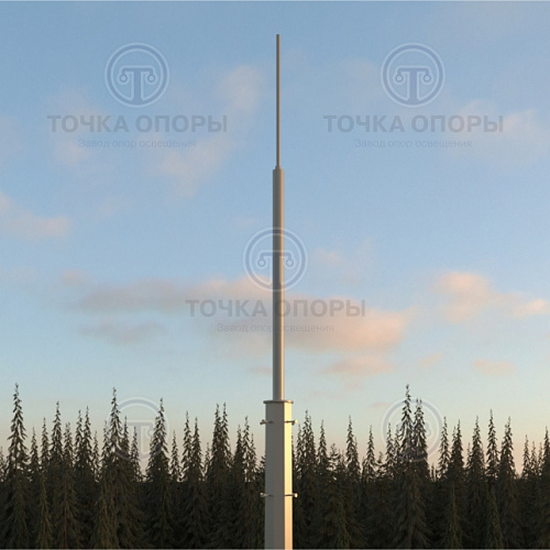 Молниеотвод (громоотвод) МОГК, как правило, изготавливается на основе несиловой опоры ОГК, к которой крепится молниеприемник – стальной молниеотводный шпиль от 1 до 5 метров. Возможно изготовление молниеотвода МОГК на базе высокомачтовой опоры.