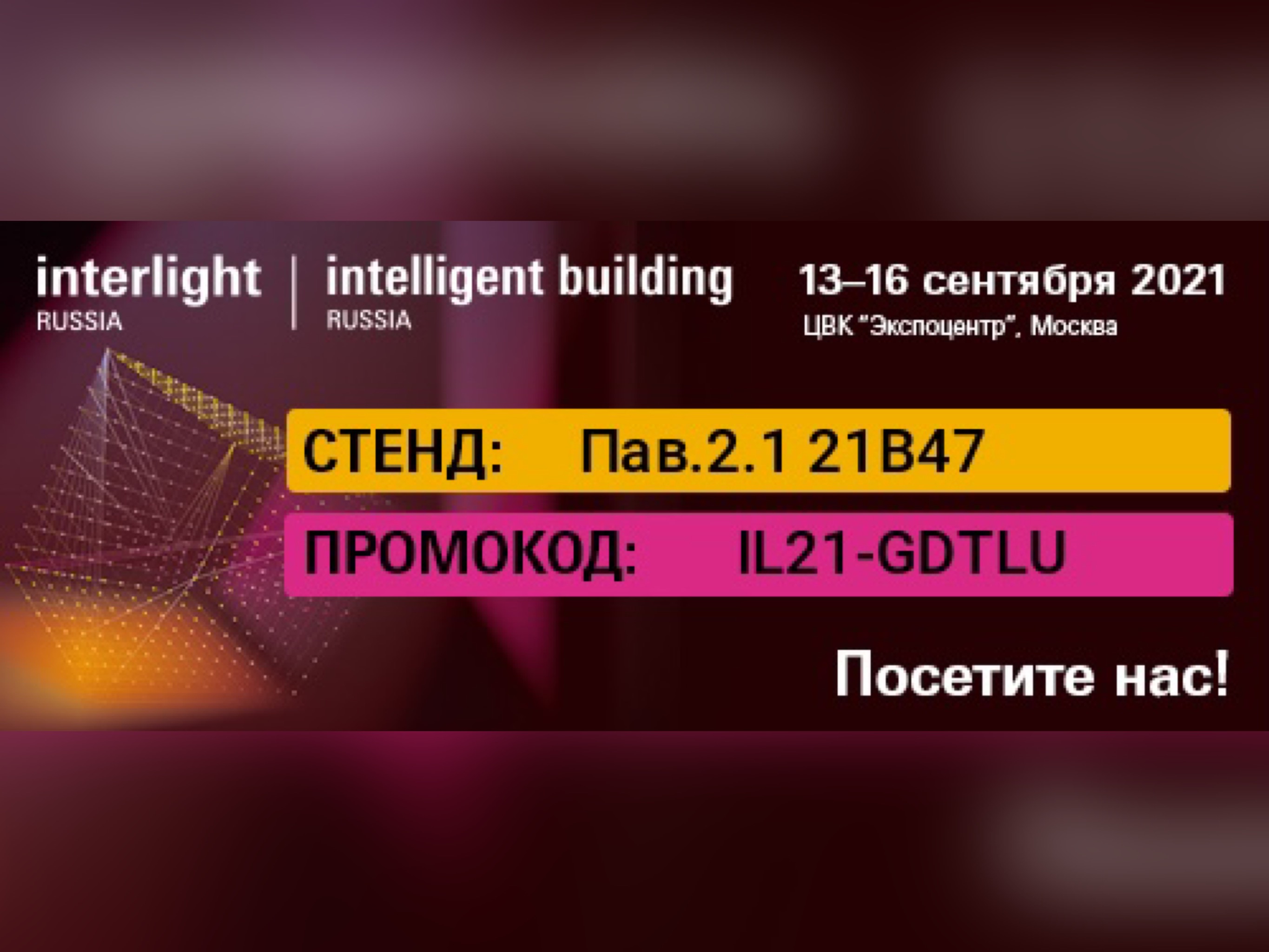 Приглашаем посетить наш стенд на выставке Interlight Russia | Intelligent building Russia, которая пройдет в Москве с 13 по 16 сентября.